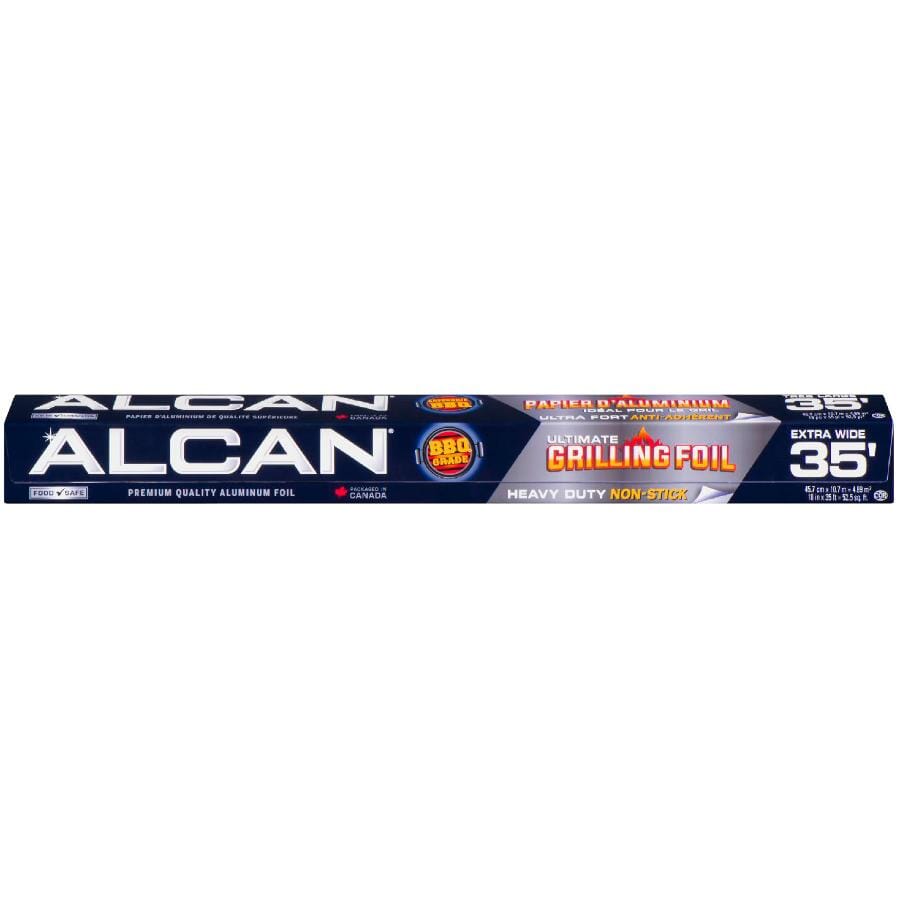Alcan® ultimate grilling foil is a must have for the everyday griller. This non-stick, extra wide, heavy duty foil is made for the intense heat of the grill, helping to avoid messy clean-ups and keeping food safe from the flames for grilling ease. It helps avoid food from sticking, keep small food from falling through the grates, protect food during long grilling times, save time on clean-up and protects the grill. Alcan® ultimate grilling foil, foods lift right off!
