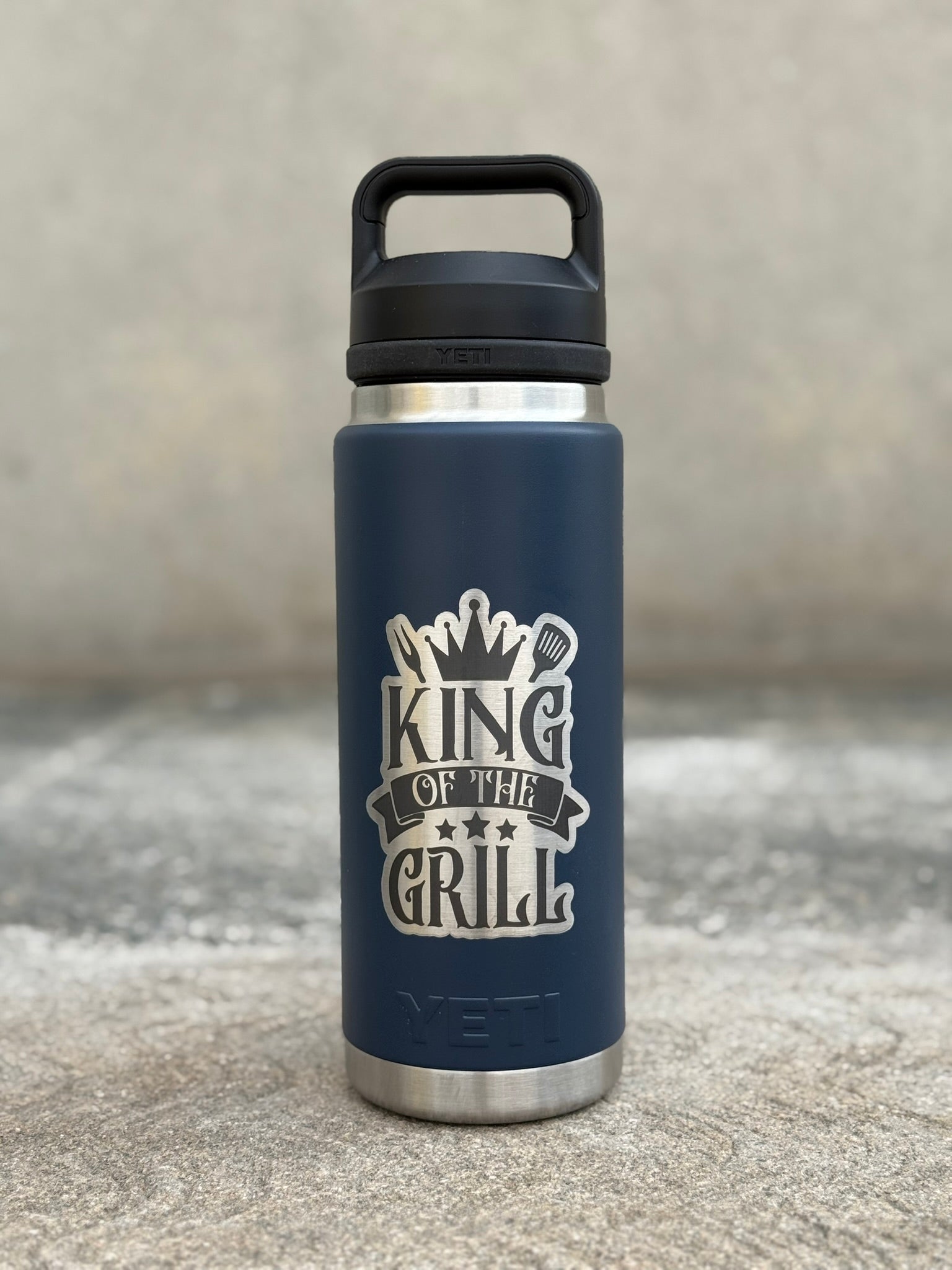 26 oz. / 769ml Navy Bottle w/ Chug Cap with Engraved Design