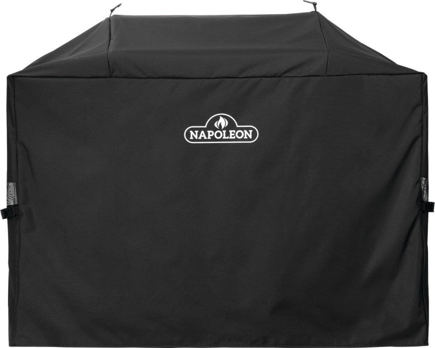 Keep your Napoleon Griddle Cart protected all year long with the Premium Griddle Cart Cover. Made from durable, water-resistant fabric that won't crack over time, it features enhanced UV inhibitors to prevent fading as well. Adjustable straps with buckles secure the cover beneath the side shelves for a snug fit, while built-in vents allow airflow to reduce moisture buildup and prevent mildew—even on windy days. Convenient hanging loops make storage simple, and a front Velcro panel provides quick access to the grill’s cabinet and makes covering and uncovering effortless. Rugged, reliable, and thoughtfully designed, this cover delivers full weather protection season after season.