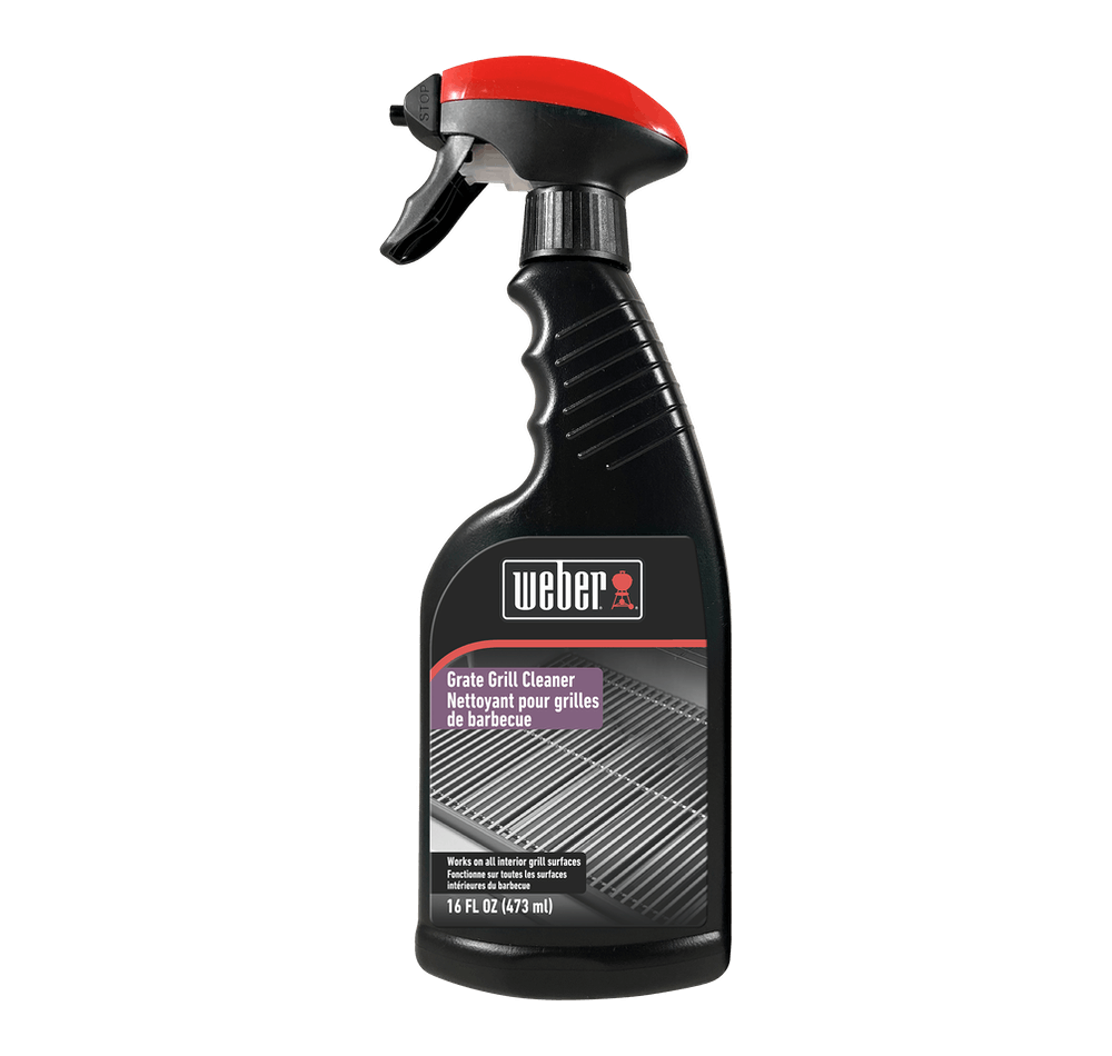 Weber Grate Grill Cleaner is a simple, safe, and powerful cleaner that removes burnt-on residue from grills. This ready-to-use spray is a non-toxic and safe on skin formula, ideal for interior grill components and cooking grate surfaces on gas and charcoal grills. It can also be used on smokers, ovens, microwaves and more.
