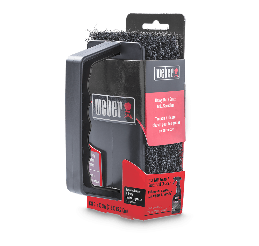 The Weber Heavy Duty Grate Grill Scrubber quickly and easily removes burnt-on food and grease. The handle design provides a firm and comfortable grip for scrubbing. When used with Weber Grate Grill Cleaner, this cleaning tool helps loosens the toughest grime from grill cooking grates and surfaces.