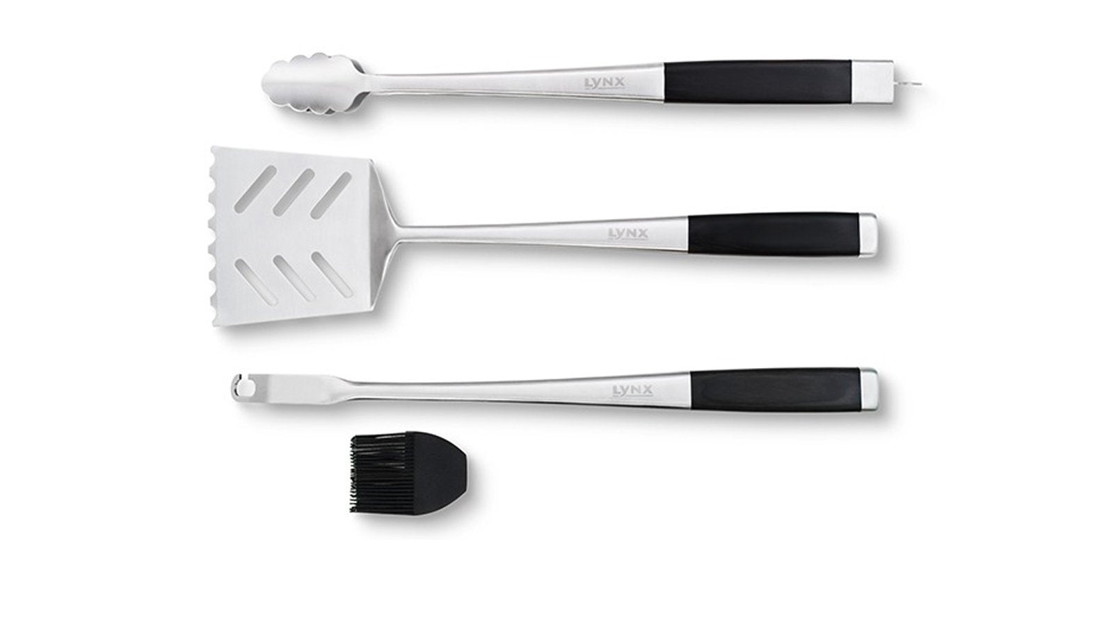 This set of coordinated tools is perfect for grilling up steaks, burgers and everything in between! Includes a large spatula with serrated lifting edge, locking tongs and a grill cleaner with silicone-head basting brush attachment. All tools feature sturdy stainless steel construction and long polished pakkawood handles to keep you at a safe distance from the heat.