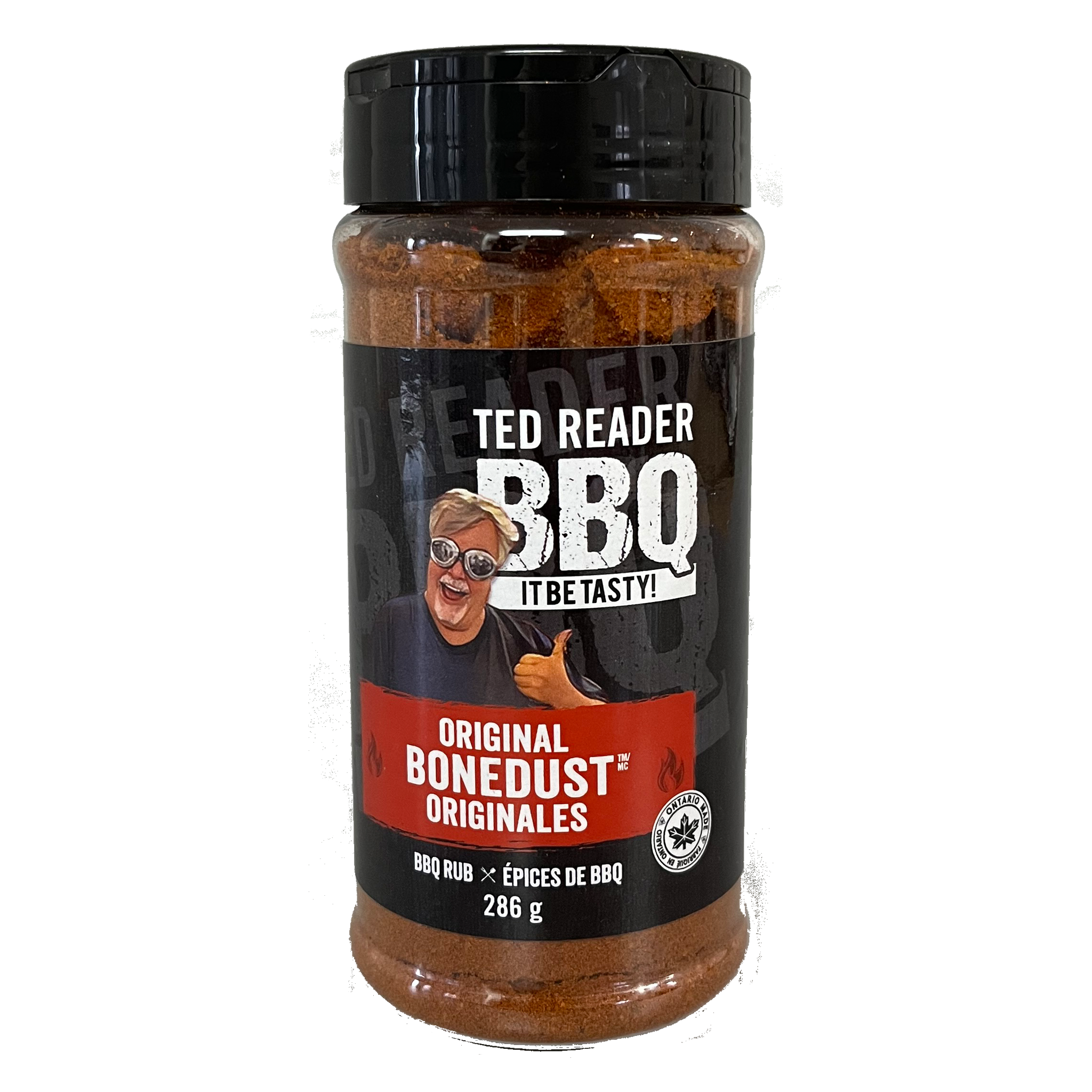 I first created my Bone Dust BBQ Seasoning Rub while being the BBQ guy on a television show back in the 90’s called Cottage Country and then published it in my Sticks n Stones Cookbook the Art of Grilling on Plank Vine and Stone (1999). It was my everyday go to bbq seasoning rub recipe. I use it on pretty much everything from Ribs to Chicken, Steaks, Shrimp, Chops, Burgers and Fries and even Popcorn. Bone Dust has gathered a cult following becoming the secret ingredient to helping you create bbq deliciousness. Made from a blend of 13 different premium spices and herbs with a touch of heat and a bit of sweet it makes all you grill mighty tasty! My Original Bone Dust Seasoning Rub #itbetasty