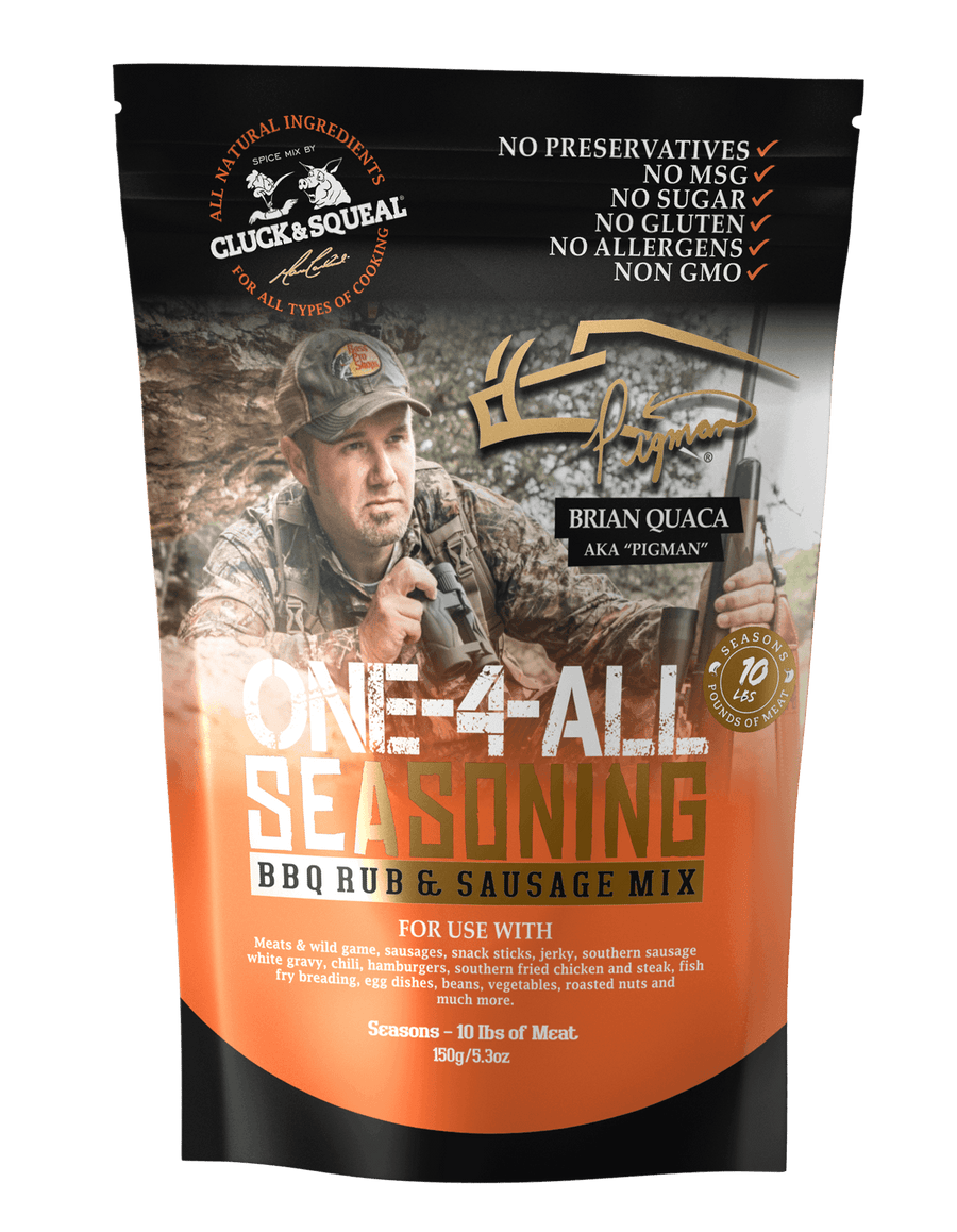 A distinctive name, an unmistakable voice, and an explosive and energetic on-screen personality have created a dramatic fan following. Brian Quaca aka “Pigman” is a wild hog assassin, avid outdoorsman and big game hunter known throughout the USA. He is the Executive Producer of “Pigman the Series” and 4-Time Sportsman Channel Host of the Year. In 2017, Pigman partnered with Marc Cardinali, a 3rd Generation Pitmaster, Pizzaiolo and Pit builder from Canada, who is a Master of Fire & Spice and creator of the award winning Cluck & Squeal Seasoning & BBQ Rub products. Together while on a hunting excursion, north met south and game met spice – this was the beginning of a unique partnership that has created one of the most versatile seasonings available stateside for all hunters, anglers, home chefs and the masses to enjoy.