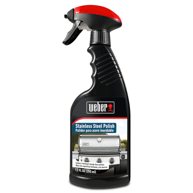 Weber Stainless Steel Polish shines and protects stainless steel grill elements. The formula removes fingerprints, grease, residue, and water marks, leaving grill surfaces shining like new. It can also be used on indoor stainless steel appliances.