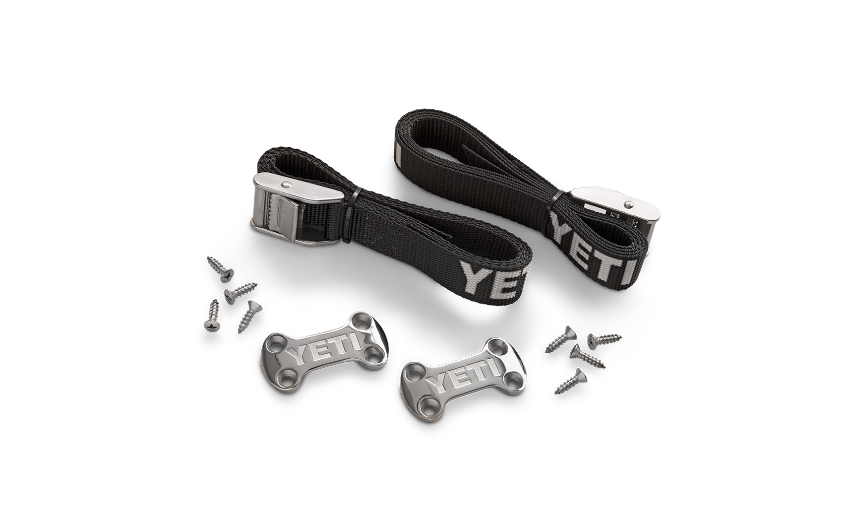 Keep your cooler from slipping or sliding with the YETI® Tie-Down Kit. This kit helps lock your cooler in place on the boat, in your truck bed, or trailer. When not in use, only the low-profile deck plates remain, leaving nothing to trip over.