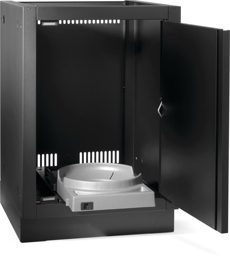 Things can get messy even in the perfect kitchen. Make cleaning up your outdoor kitchen OASIS™ easy with the OASIS™ Waste Drawer Cabinet. Featuring a garbage pull out with a removable waste bin, and a flip down drawer with paper towel holder. This powder coated, galvanneal cabinet features increased durability from the two-coat pebbling, finishing system and stainless steel door and drawer front. Installation is a breeze with knockouts for gas and electrical. Levelling feet ensure a balanced surface, even if your patio isn’t perfectly level. Add this cabinet to the perfect outdoor kitchen OASIS™, along with your choice of grill head and under grill cabinet.