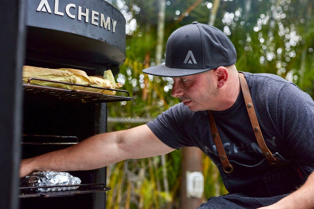 Crafted with a patent-pending design, Alchemy stands as a testament to versatility, allowing you to transcend culinary boundaries by simultaneously smoking, grilling, and griddling. This groundbreaking approach opens a realm of possibilities, from infusing meats with the richness of smoke to achieving the perfect sear on your favourite cuts.