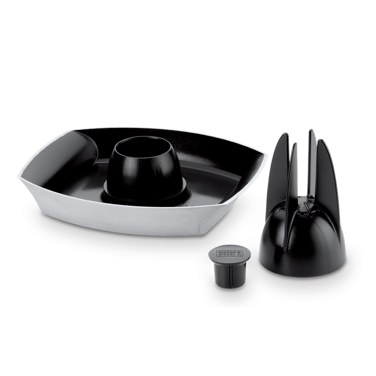 Prepare a crispy yet moist chicken with flavors only produced by beer, juice, or wine. The Weber Deluxe Poultry Roaster holds liquid that fills your poultry with flavor and has a cap to lock in the steam, capturing juices for basting. After the plates have cleared and stomachs are full, the ceramic non-stick coating makes cleanup easy.