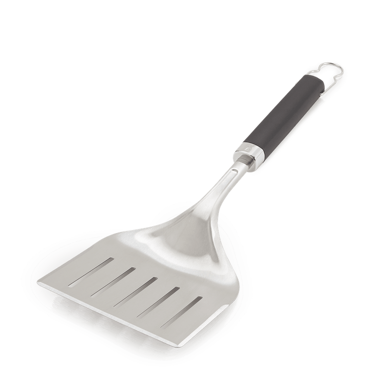 Lift and move large cuts of meat or delicate fish with ease. The wide grill spatula features a 3-sided beveled edge design that allows you lift foods with precision from any angle. The heavy-duty stainless-steel construction and soft-touch handle provide control as the oversized head picks up large cuts or fragile foods with minimal effort.