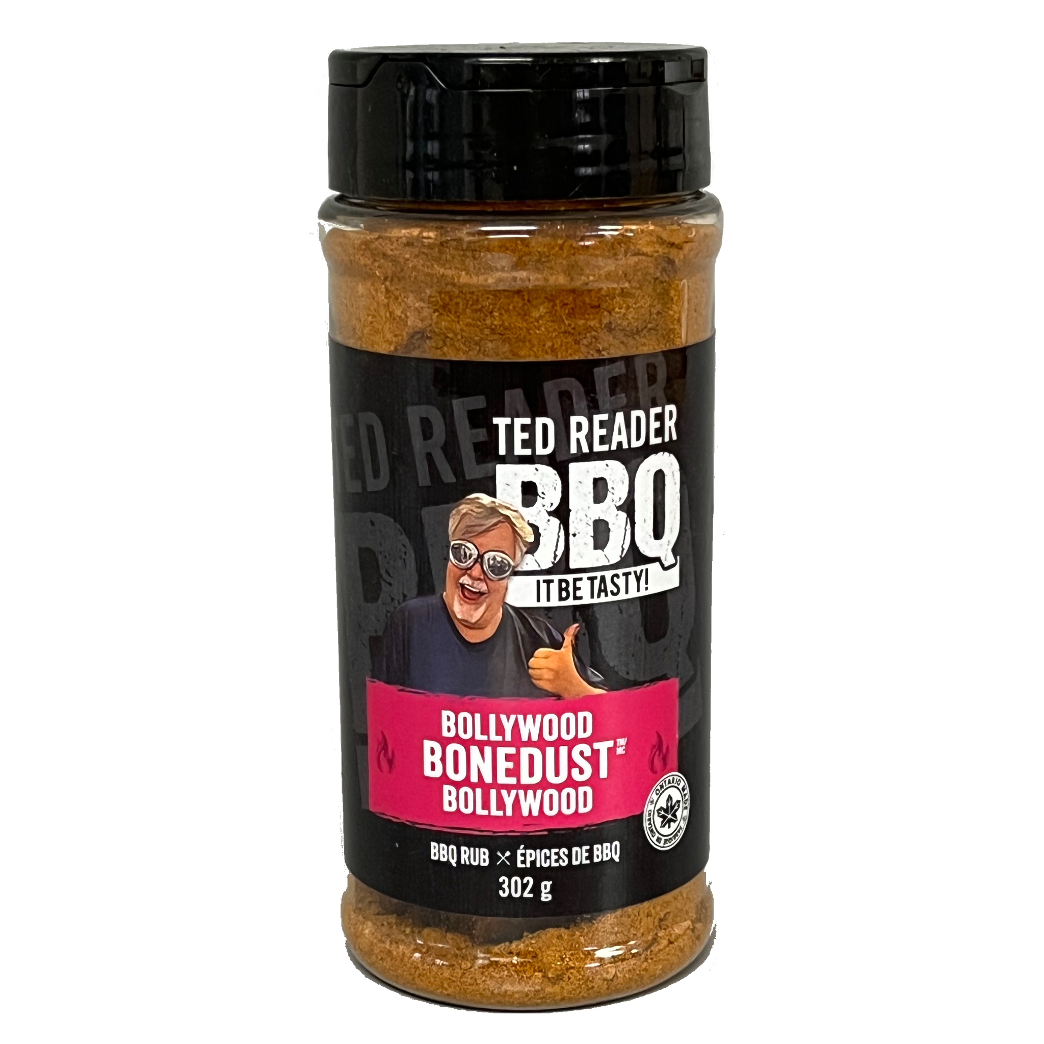 One of the key ingredients to my Original Bone Dust Seasoning Rub is mild yellow Indian curry powder which provided a background spice blend that gave Bone Dust its character. Bollywood Bone Dust is an extension of Bone Dust with a large increase in the Indian spices used in Bone Dust. It gives that boost of Indian spice to all you grill or barbecue. It’s Very Very Good!